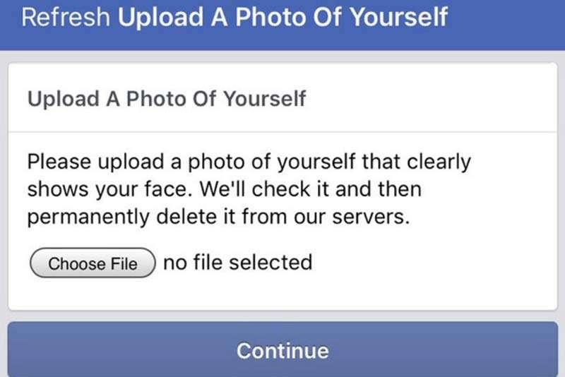 কোনও ফেসবুক অ্যাকাউন্টে সন্দেহজনক কিছু দেখতে পেলে সংস্থার নিরাপত্তা বিভাগ ইউজারদের বলছে, তাঁদের পরিচয়ের প্রমাণ দিতে। তখন ইউজারকে নিজের মুখের পরিষ্কার একটি ছবি সাইটে আপলোড করতে হবে।