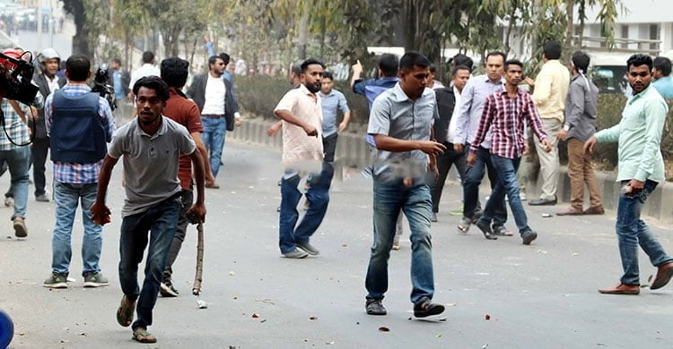 মগবাজারে ইটপাটকেল ছোড়াছুড়ি