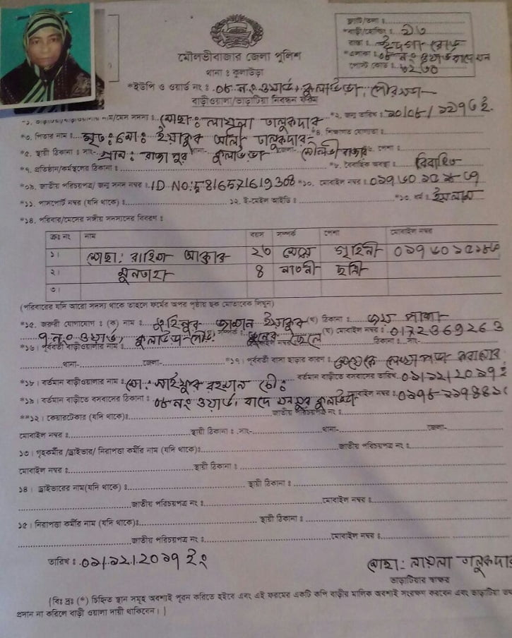 এদিকে কুলাউড়া পৌর শহরের ঈদগা রোড়ে বাদে মনসুর হোল্ডি নং-৩৯ একটি ভাড়া বাসায় ওই প্রবাসীর স্ত্রী ও মাকে নিয়ে ছাত্রলীগ নেতা ইয়াকুব অভিভাবক হয়ে অবস্থান করছেন বলে দাবী করেছেন দুবাই প্রবাসী সালামত মিয়া। মৌলভীবাজার জেলা পুলিশের দেওয়া ভাড়াটিয়া নিবন্ধনের একটি নির্ধারিত ফরমে জরুরি যোগাযোগের স্থানে ইয়াকুবের নাম ঠিকানা ও নাম্বার দেওয়া রয়েছে।