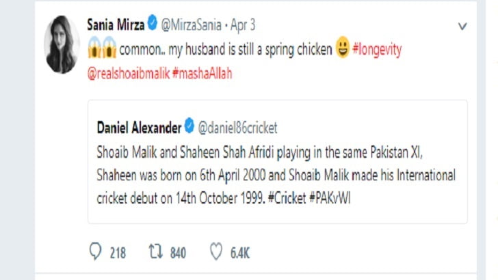 জবাবে শোয়েবের হয়ে ব্যাট ধরেন সানিয়া। এক বাক্যে অ্যালেকজান্ডারকে উড়িয়ে দেন এ টেনিস সুন্দরী, আমার স্বামী এখনও বাচ্চা ছেলে (স্প্রিং চিকেন)।