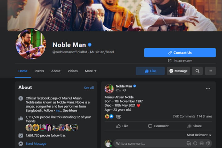 তার স্ট্যাটাসে লেখা, “মইনুল আহসান নোভেল জন্ম- ৭ নভেম্বর ১৯৯৭ মৃত্যু- ১৮ মে ২০২১ বয়স ২৩ বছর।”